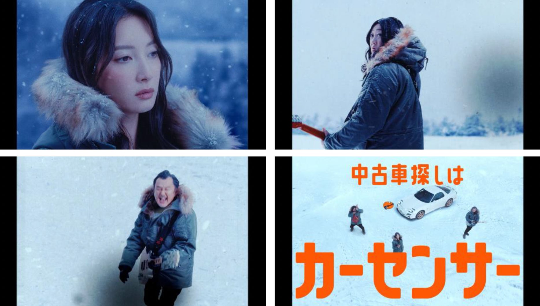 中古車情報メディア『カーセンサー』新CM 双子姉妹役の菜々緒さんとロバート秋山さんに加え、吉田鋼太郎さんを起用!GLAYの名曲『Winter,again』のMVを3人でオマージュ