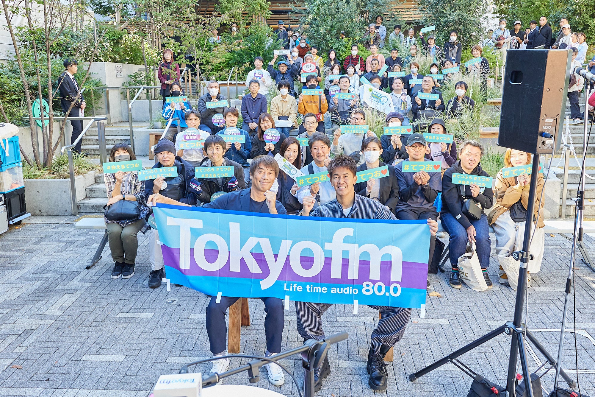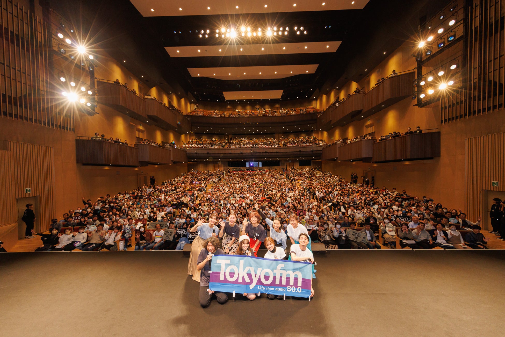 生放送は「TOKYO FM、TOKYO FM、TOKYO FM80~♪」と会場のリスナーのアカペラの合唱ジングルでスタート!「ワイドパーソナリティ集合記念 ここ