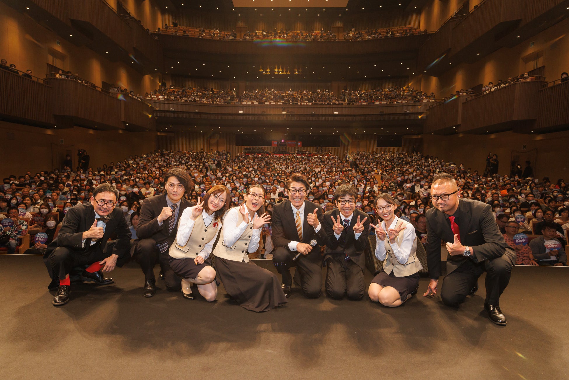 妻・優は15年経って安部礼司の変わったところに「アドリブに強くなった」と回答し、最後にアドリブで安部礼司に大喜利を出題。会場の皆さんと一緒に「いい夫婦とかけまして」と「酒好きの酒豪の友達ととく・・・(その心は)いっしょう付き合っても変わらぬ愛情」と答え、拍手で締めくくりました。