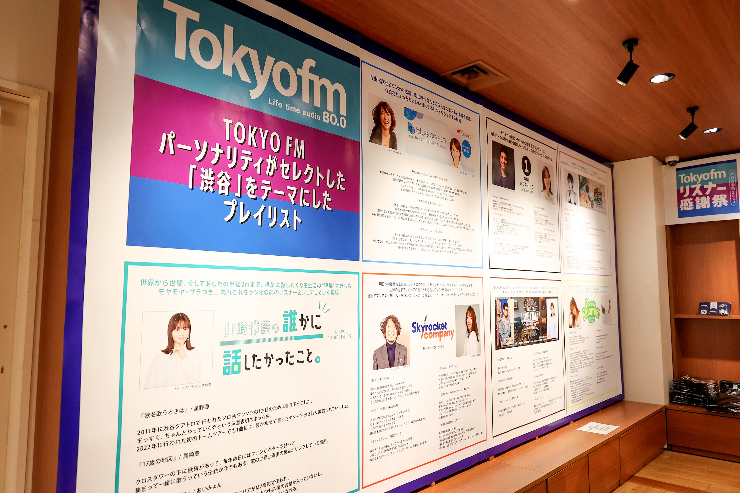 他にも2階のイベントスペースでは、TOKYO FMパーソナリティが「渋谷」をテーマに選曲をしたプレイリストの展示や、TOKYO FMの53年の歴史の思い出のタイムテーブルや写真の展示し、多くの見物客で賑わいました。またTOKYO FMグッズの一部商品の販売もされ、こちらもリスナー感謝祭のオリジナルグッズは完売しました。(*こちらの展開は、10月29日(日)まで)