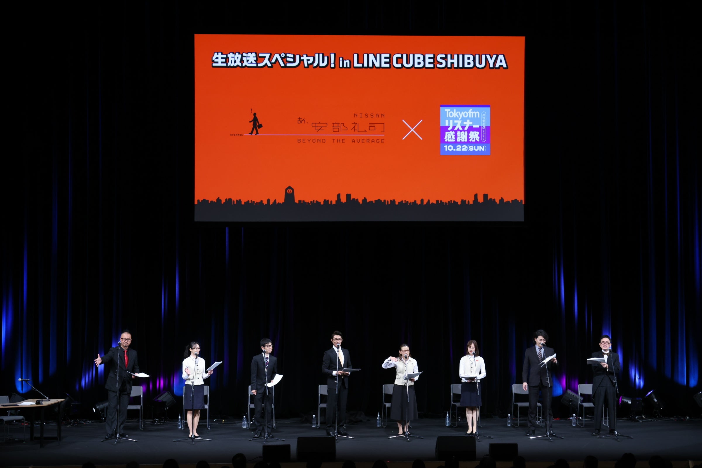 16時45分からは、ごく平均的なサラリーマン「安部礼司」が、社会の荒波に揉まれながら成長していく様子を描いた大人気ラジオドラマ『NISSAN あ、安部礼司~BEYOND THE AVERAGE~』(毎週日曜17:00-17:55放送)のイベントを実施。17時~17時55分は、レギュラー放送に合わせ会場からの公開生放送を実施。