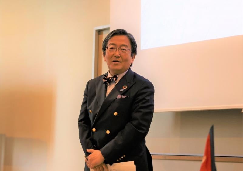 講演会は、片山貴寛山岳会事務局長の開会の式辞に続き、那須保友学長が祝辞を述べました。香川弘昭山岳会会長は「ダウラギリ初登頂50周年によせて」と題して、山岳会の歴史とその意義を振り返りました。