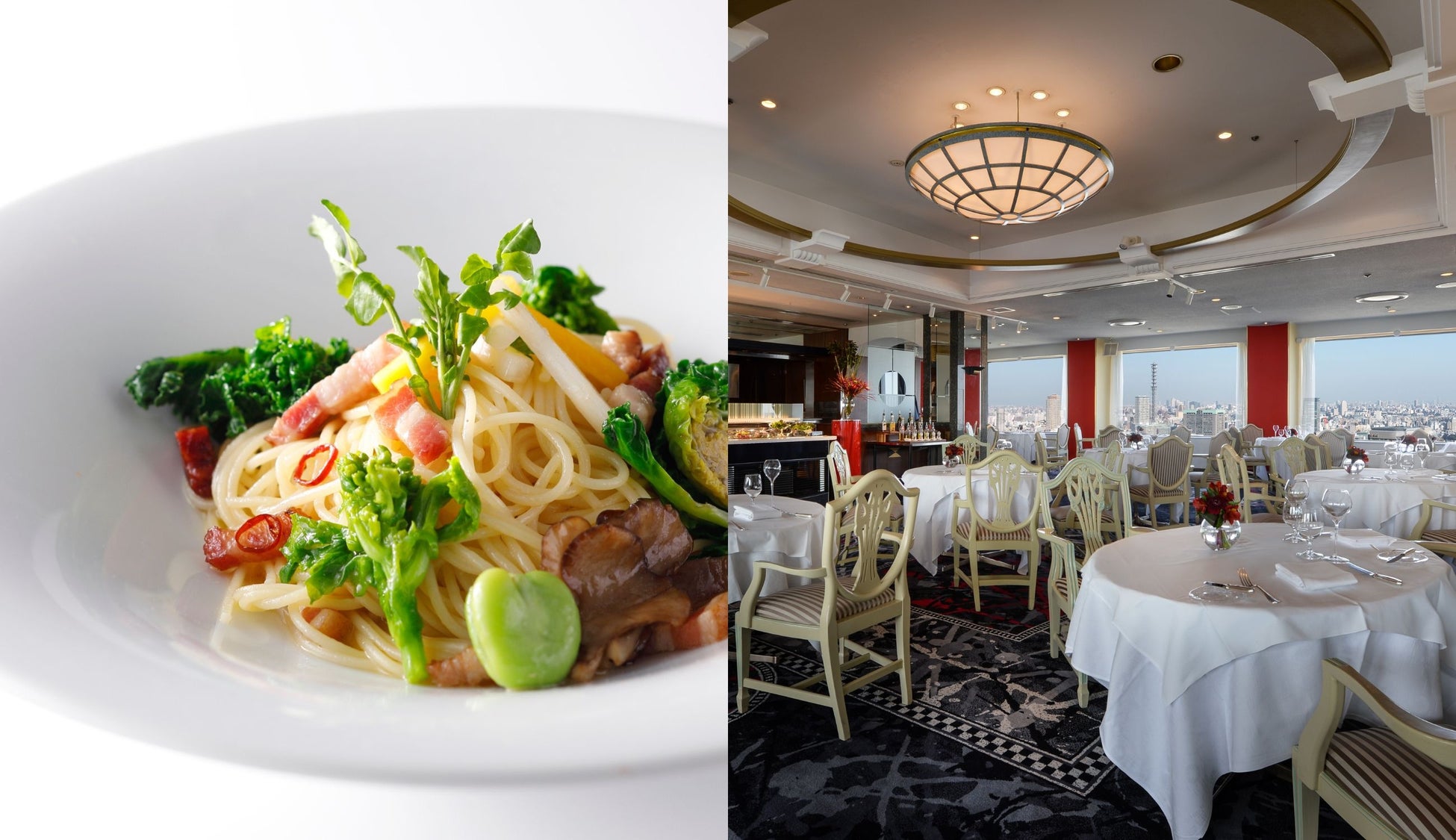 地上144mのホテル最上階から、ランチタイムには緑のオアシスを、ディナータイムには煌めく都内の名所を一望できる絶景レストランも、「オータニ割!」プランでお得に。