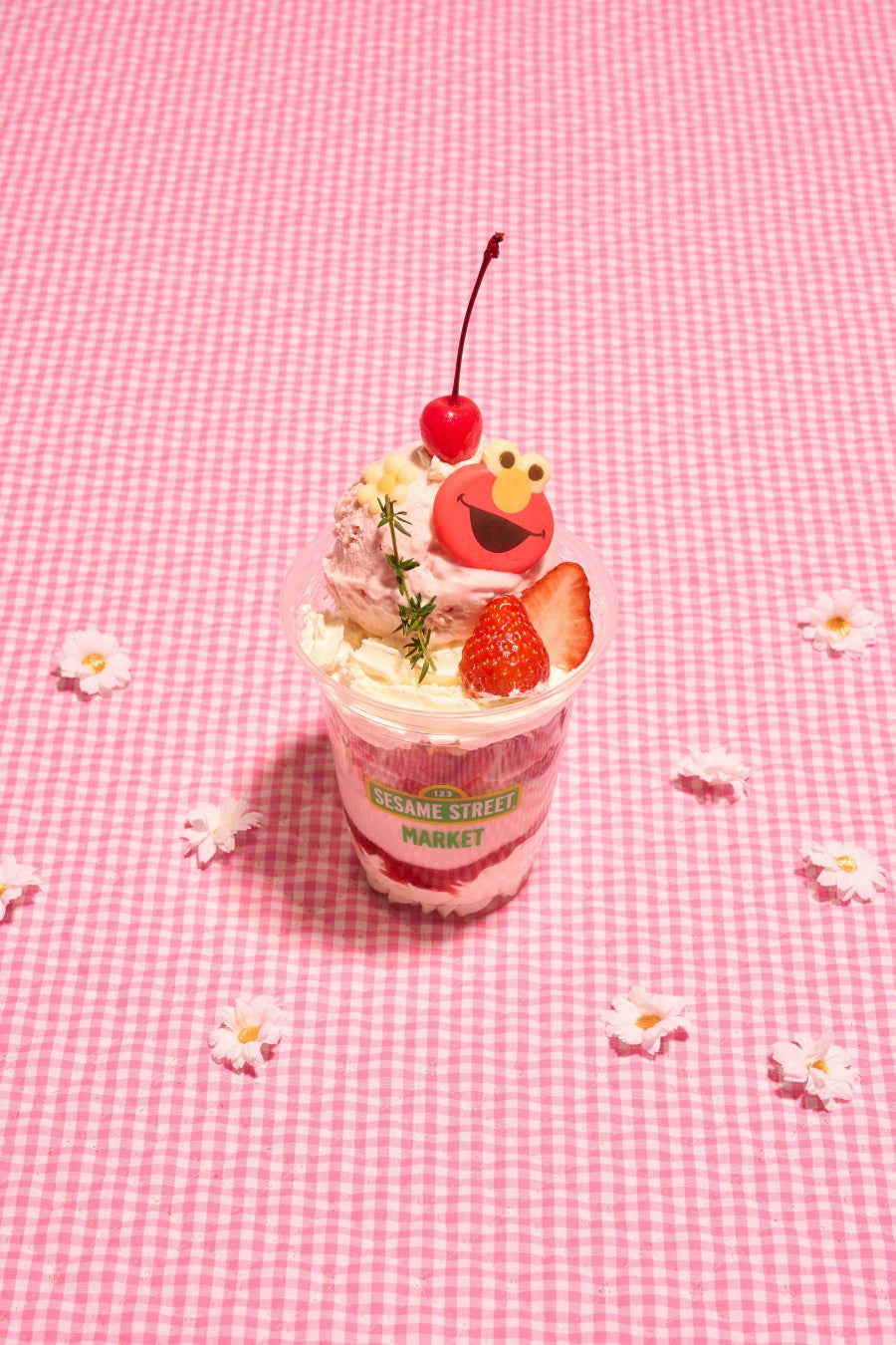 まるでエルモがいちごの季節を楽しんでいるような見た目も楽しいパフェは、一口目からご褒美感満載の特別なひとときを楽しめる一品です。