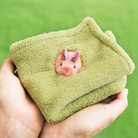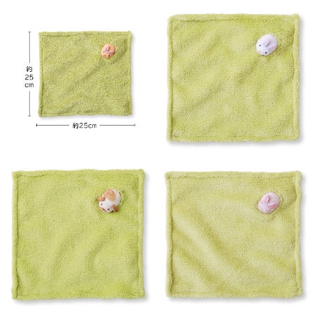 ハンカチを広げると、草原にちょこんと佇むかわいらしいうさぎの姿が楽しめます。