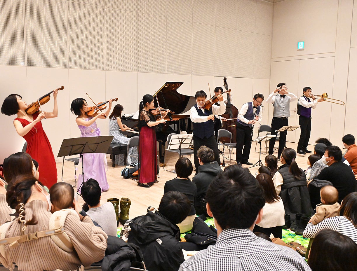 “0歳の赤ちゃんでも安心して楽しめるクラシック”をコンセプトに、楽器体験や体を動かすコーナーを取り入れた参加体験型コンサート。赤ちゃんの情緒やリズム感を育むと同時に、保護者にも「本格的な音楽体験」を提供することを目指しています。