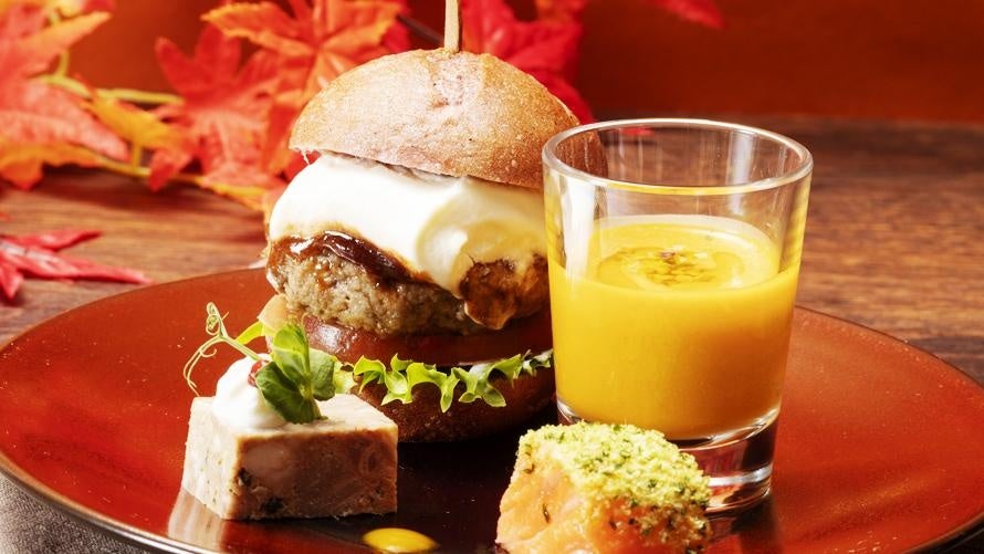 赤ワイン風味のバンズに濃厚なクリームチーズをサンドした秋色のミニバーガー