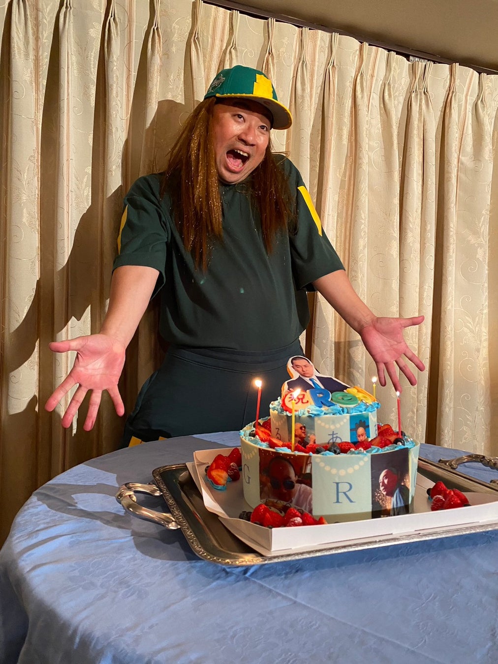 すると、突然流れてきたバースデーソングにRGはビックリ。馴染みのないバースデーソングがどうしても気になったようで、すかさず「い~や、あんまり聞いたことないハッピーバースデーの歌!!」と東京ホテイソン・たけるのツッコミで笑いを取る。スタッフが用意した特製のケーキと、参加者が用意した「RG50」のバルーンに大喜びのRGは、「じゃあ『RGさん、50歳、おめでとう』って練習しよう」と自ら仕切り始め、「俺がまるで初めてケーキを見たようなリアクションするから」と全員でミニコントスタート。参加者からの「RGさん、50歳、おめでとう」の声掛けとともに、オーバーリアクションで驚いたRGがケーキのろうそくを吹き消すと、会場内は大きな祝福の拍手に包まれた。