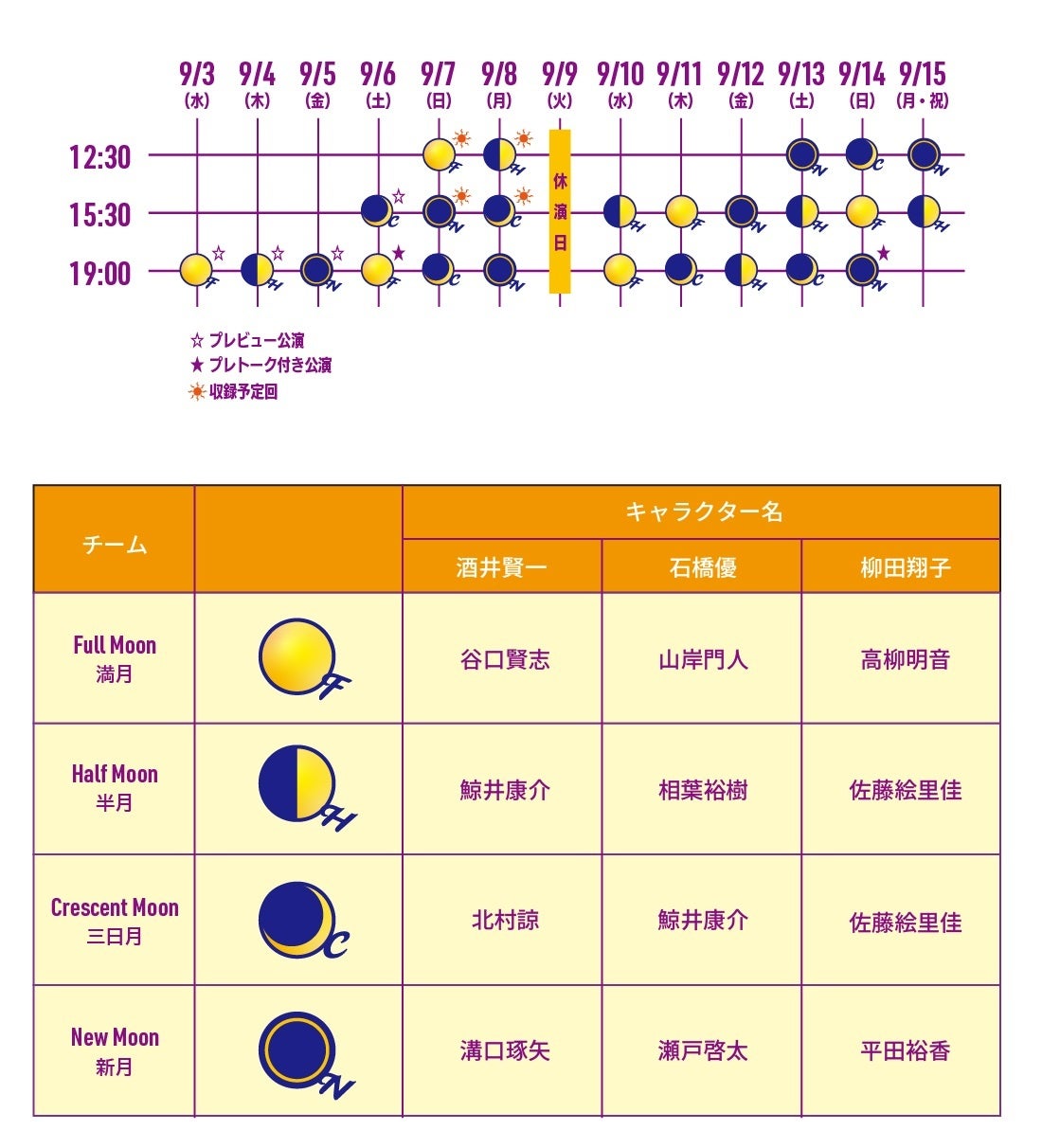 9月6日(土)19時(満月):鯨井康介(MC) 相葉裕樹 北村諒 溝口琢矢 瀬戸啓太