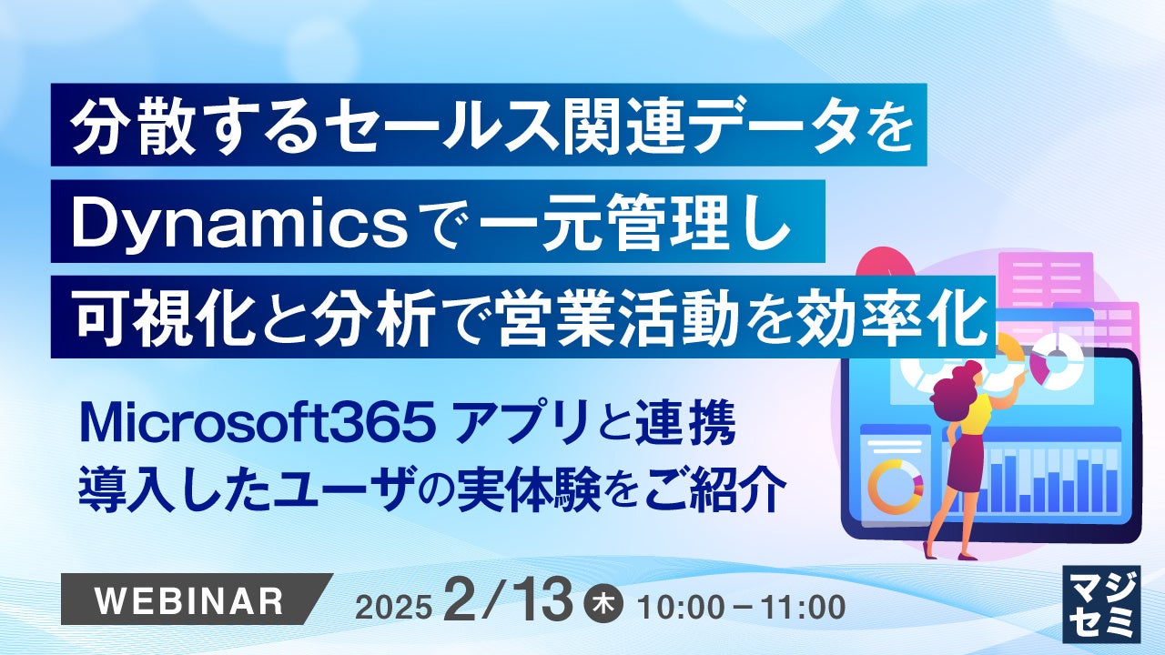 マジセミ株式会社は「分散するセールス関連データをDynamicsで一元管理し、可視化と分析で営業活動を効率化」というテーマのウェビナーを開催します。