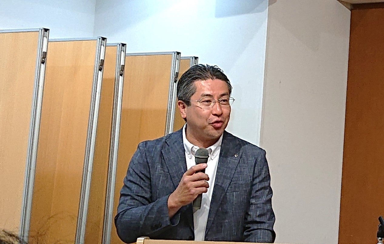 東京駐在の佐藤法仁副理事・副学長・上級URA(歯学部卒)は、大学の近況について広報誌「いちょう並木」をもとに説明。また、現在実施されているクラウドファンディング「医療的ケア児のための手順書解説動画制作プロジェクト」への支援を呼びかけました。