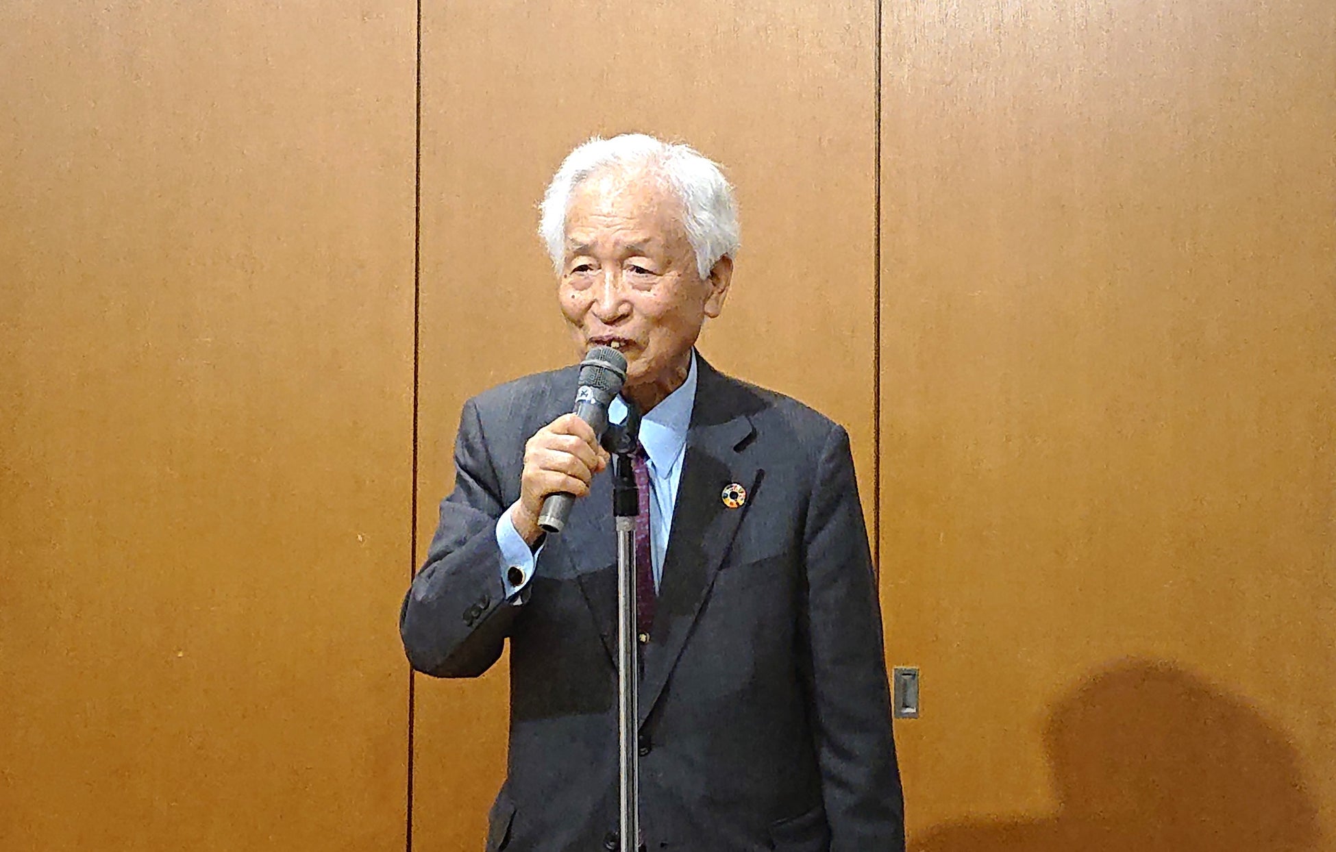 参加者による近況報告と活発な意見交換の後、最後に小長Alumni会長があいさつし。官僚として通商産業省(現経済産業省)事務次官や総理秘書官として田中角栄元総理の傍に立ってこられたこれまでの経験等から得た知見や本学への想いなどを振り返りながら同窓生へのエールを送るとともに「変化し続ける本学の歩みに同窓会もしっかり歩調を合わせ、大学を盛り上げていきたい」と語りました。