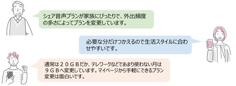 昨年4月より1GB刻みで選べる料金プランへ変更し、すでに多くのお客さまがご自身のライフスタイルにあわせて、料金プランを変更いただいております。この度の料金改定及びシェア音声プランの容量の選択肢追加により、料金プラン変更がさらに便利にお得にご利用いただけます。