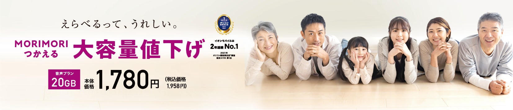 4月1日よりイオンモバイルが大容量「さいてきプラン MORIMORI」を値下げ
