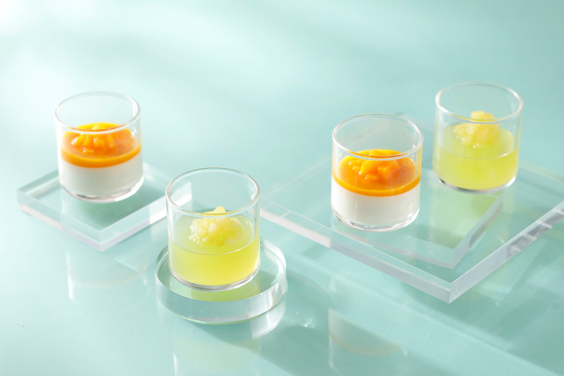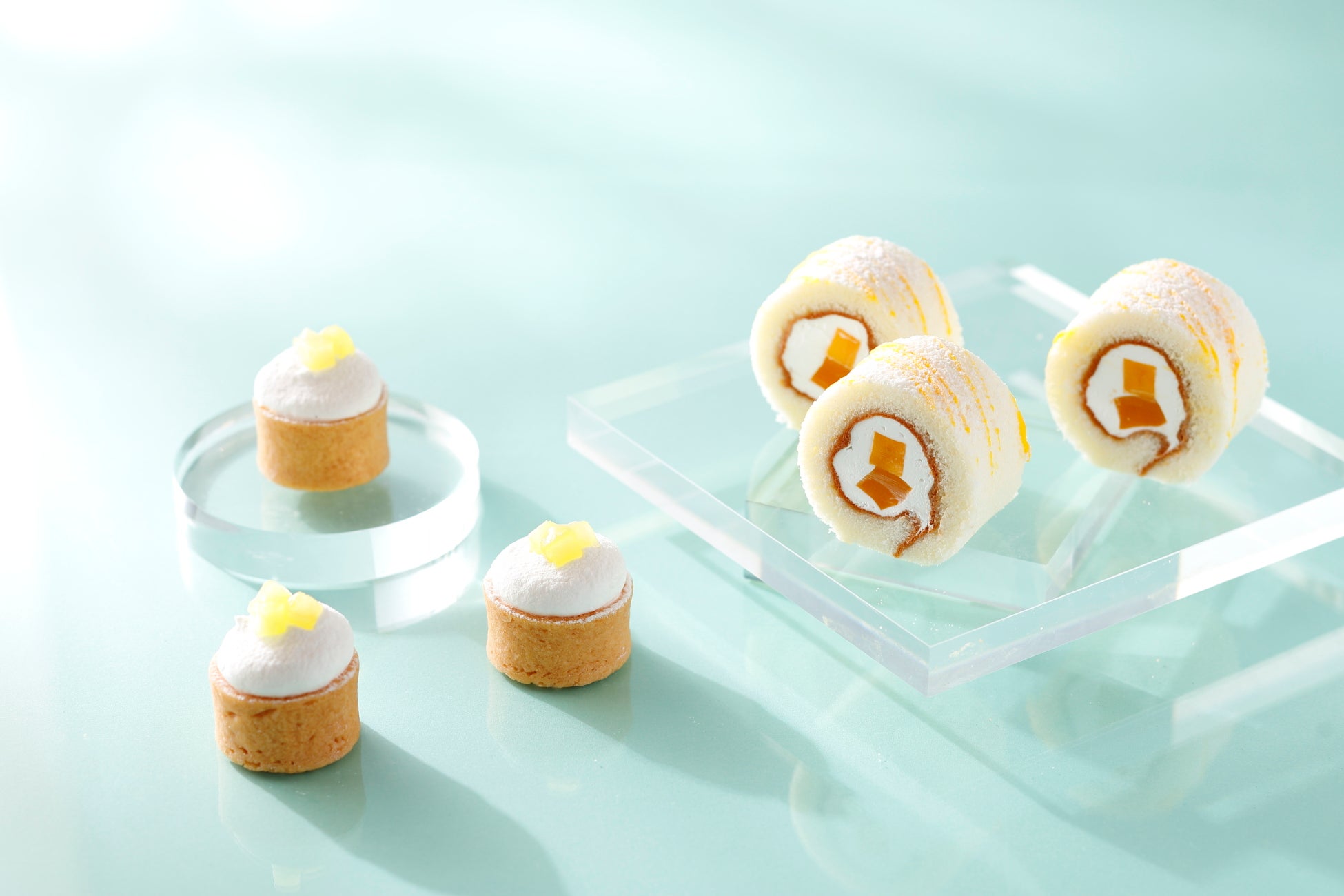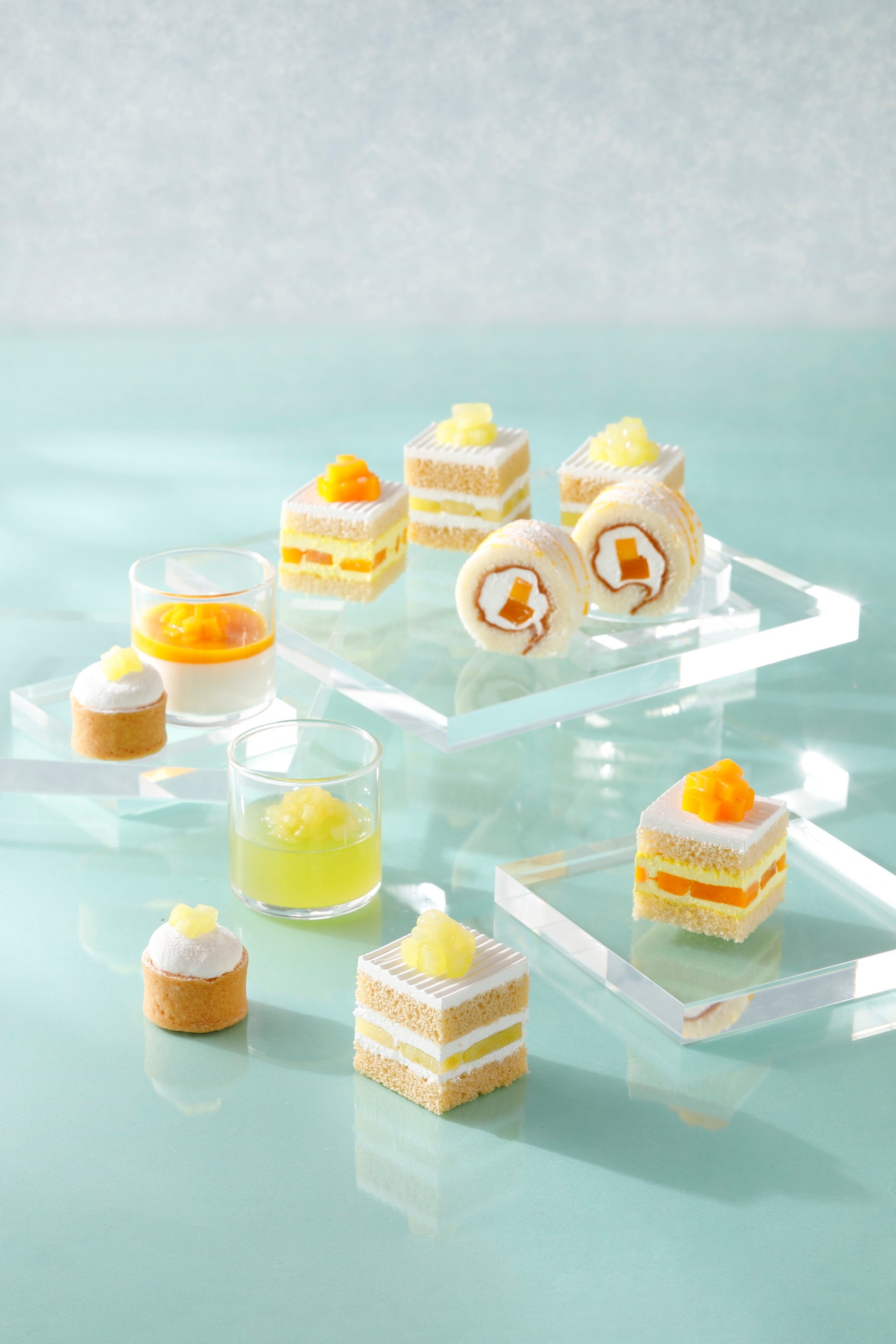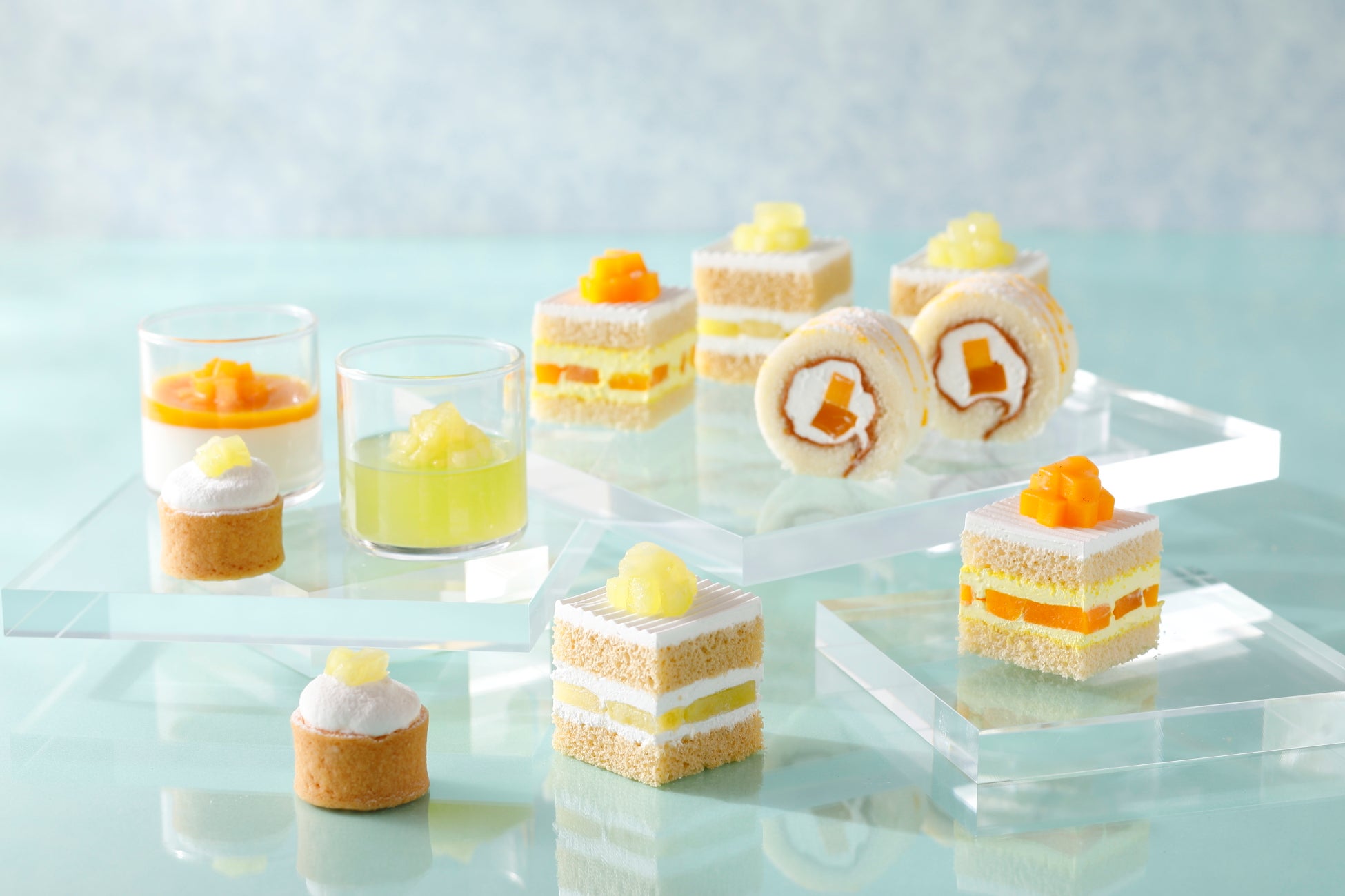 さらに、サクサクの生地にメロンジュレ、和三盆カスタードクリーム、白あんを加え、和テイストの新作「メロンタルト」や、しっとりふんわり食感の生地にマンゴーの甘さを凝縮した寒天を入れた「マンゴーロールケーキ」などのほか、爽やかなグラススイーツ「マンゴーゼリー」や「ピュアメロンゼリー」がビュッフェ台を彩ります。