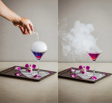 ラム酒をベースにエルダーフラワーの華やかな香りを添えた、まるでアート作品のように美しい一杯。お客様ご自身で、レモン果汁を加えることで、バブルが弾け、カクテルの色が青からピンクへと鮮やかに変化します。お客様との絆がこれからも永く続くように、5周年という節目にふさわしい「変わらぬ美しさ」を象徴するカクテルです。