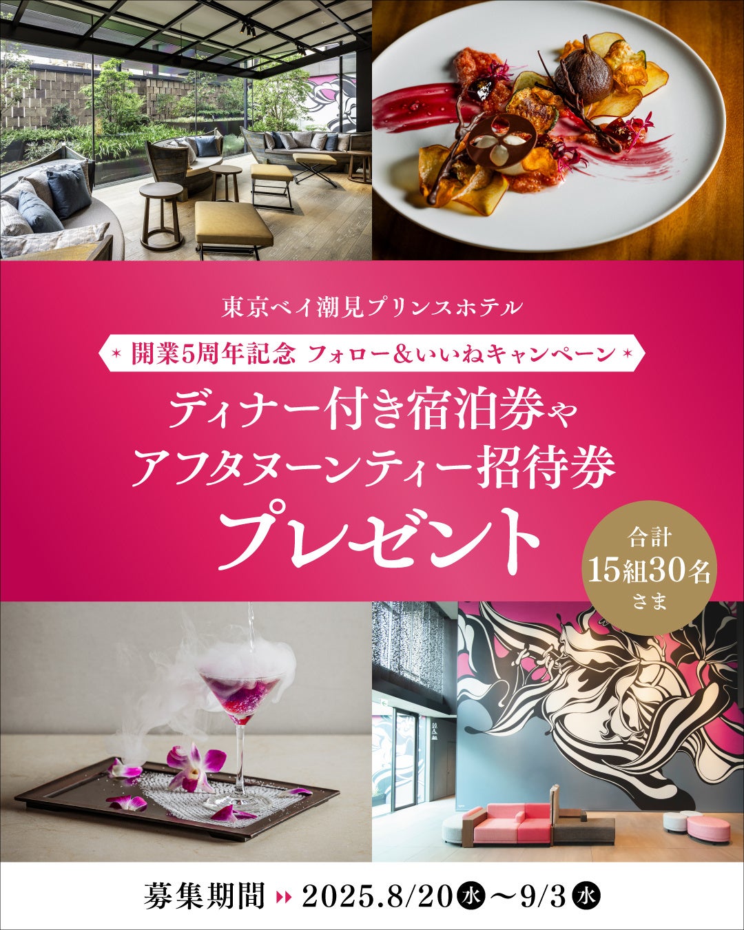 ※厳正な抽選の上、上記の商品の当選者には2025年9月中旬頃に、東京ベイ潮見プリンスホテル公式アカウント(@tokyobayshiomi_princehotel)よりダイレクトメッセージにてご連絡いたします。