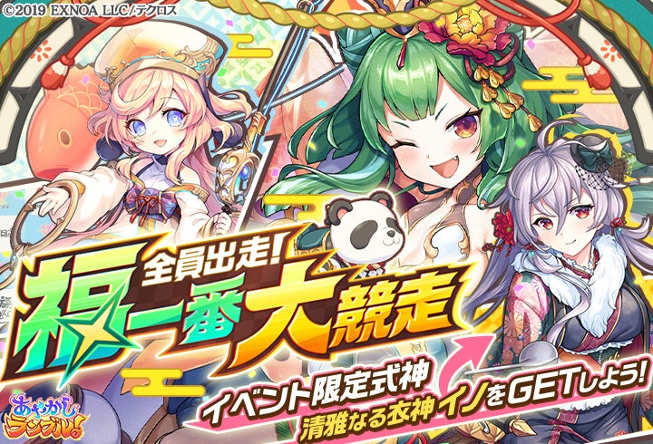 あやかし美少女RPG!DMM GAMES『あやかしランブル!』にて、未所持★5式神確定の無料10連召喚を開催!さらに新守護五天「★5ヒメノ」やお正月限定式神も登場!