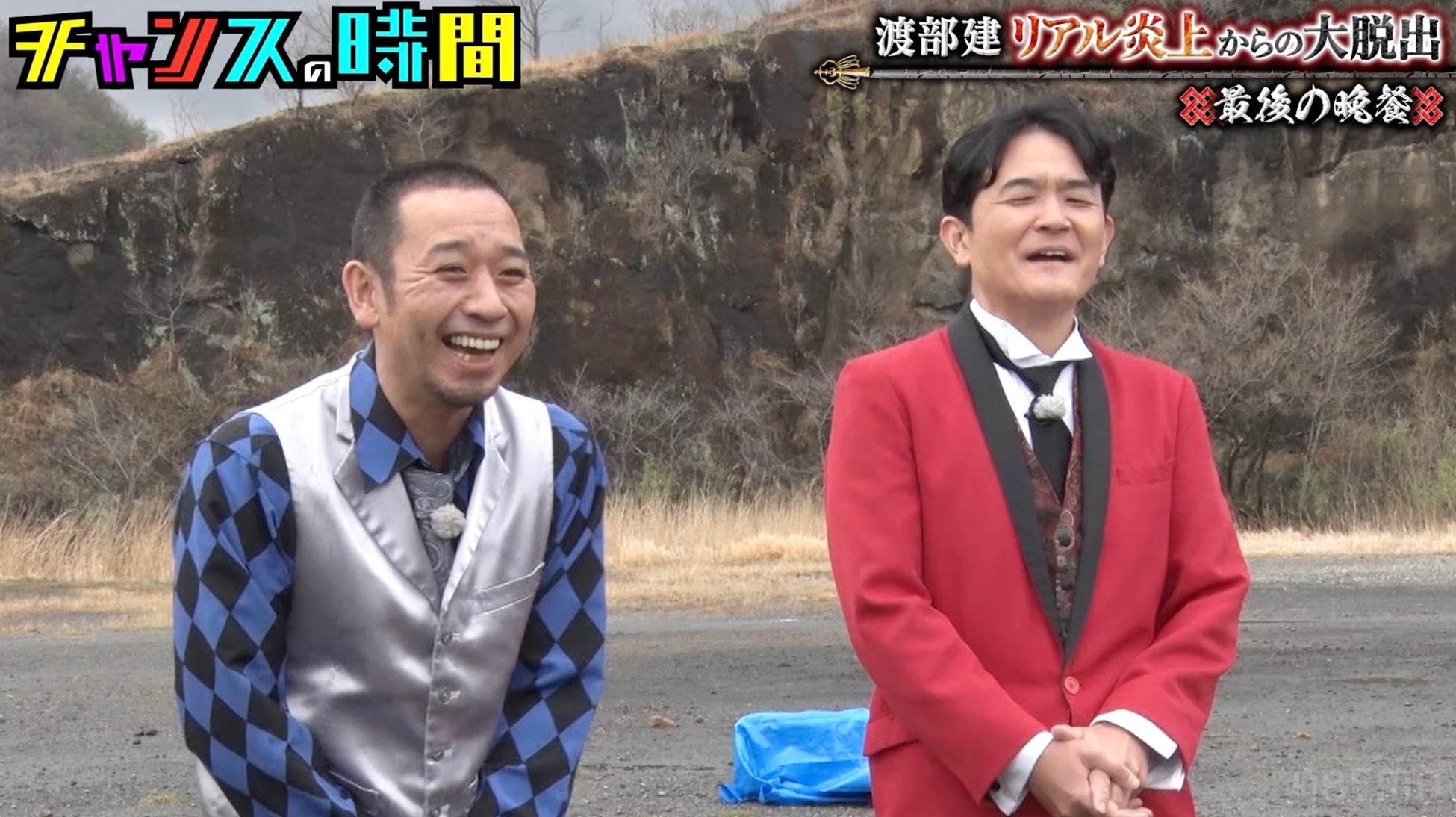 続いて行われた儀式「最後の晩餐」では、人生をかけた挑戦を前に、渡部の恩人からの食事が届きます。VTRで登場したのは、渡部が謹慎中にアルバイトをしていた豊洲市場の中卸業者「山治」の山崎康弘社長。騒動が出た当時の心境について、山崎社長は「正直『何やってんだ』っていう気持ちはあった」と語りつつも、「そのあとお会いした時に、ちょっとマズいなって目をしていたし、憔悴しきっていた。家から少しでも早く出さなきゃと思って、『だったらうちのお店で働けよ』って話をさせてもらいました」と救いの手を差し伸べた理由を明かします。その時の渡部の反応について、社長は「『いいんですか?』っていうのと、彼は再三にわたって『お金は要らない』の一点張り」だったと振り返るなど、深い絆が伝わるエピソードが語られました。しかし、感動的な空気が流れる中、社長の口から「市場に来た時に、でかいベンツで来たわけよ。もうちょっと気遣えよって思ったんだけど」とアルバイト初日のまさかのエピソードが暴露され、千鳥ら芸人一同は大爆笑。渡部が「それはもう忘れてよ!社長!」と苦笑する場面もありました。その後、山崎社長から届けられたアジを使った「アジフライ」を前に、怪訝な表情を見せてしまった渡部の言動で、現場に再び不穏な空気が流れることに…。