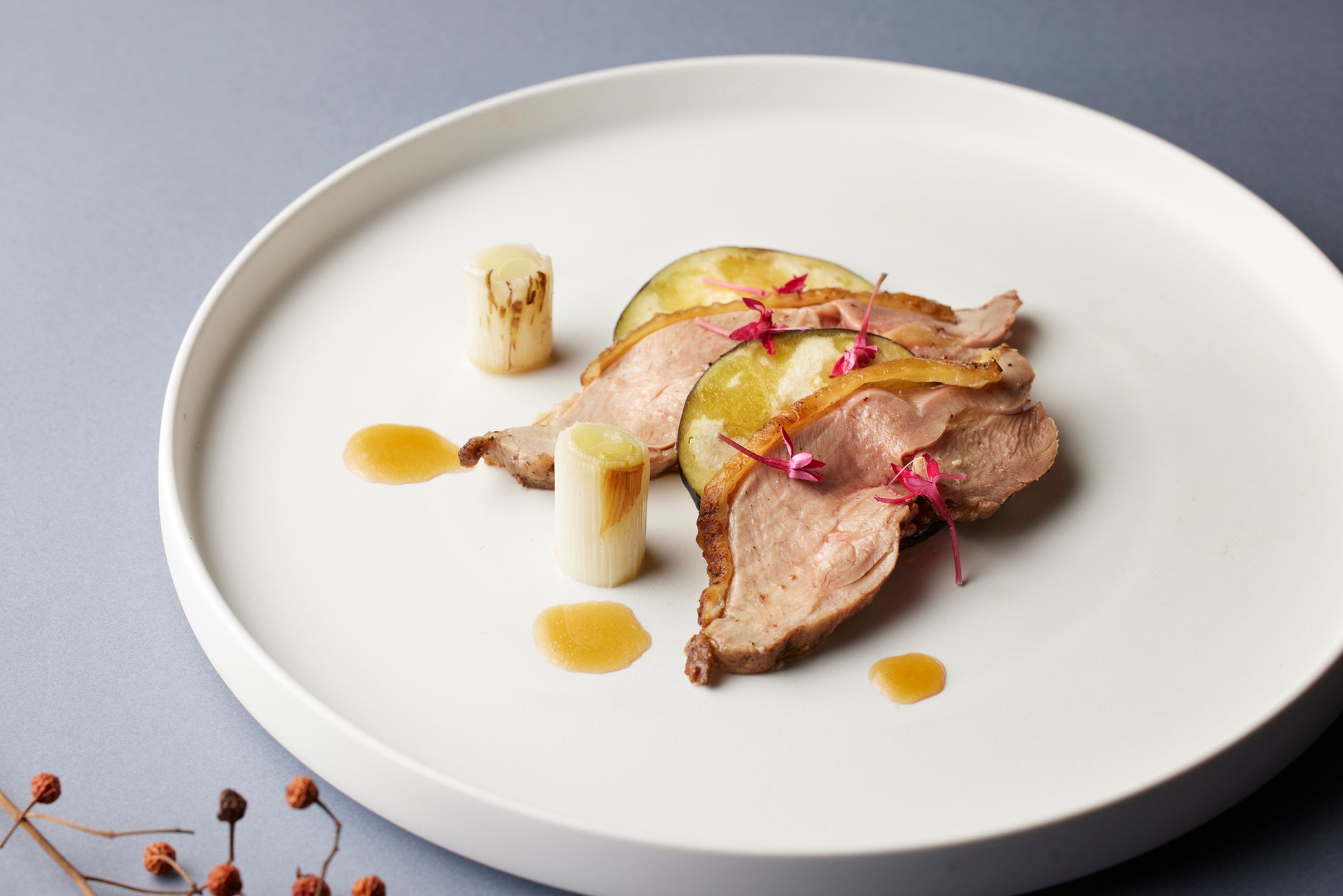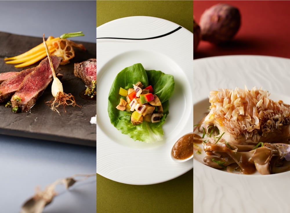 グリルダイニング『The Grill on 30th』で提供するディナーコースでは、メインとなる肉料理は、フェアの前半では、贅沢にもにいがた和牛の食べ比べができる「雪温貯蔵にいがた和牛ランイチグリルの食べ比べ 魚沼山葵ソース」、後半は「雪温貯蔵にいがた和牛スネ肉のビーフシチュー 雪室野菜を添えて」をご堪能いただけます。付け合わせのソースや野菜も、フレンチの要素を取り入れながら、新潟の秋の味覚を活かしています。