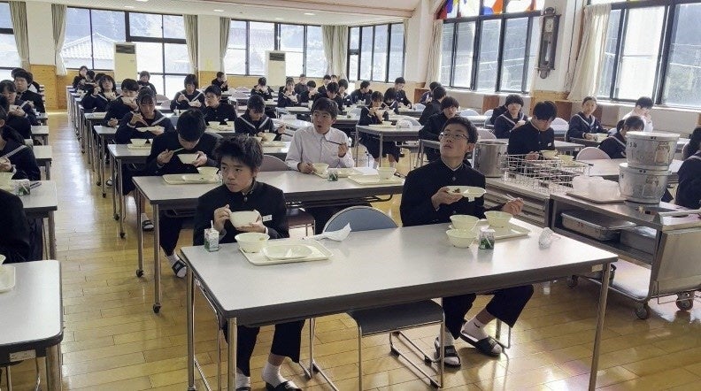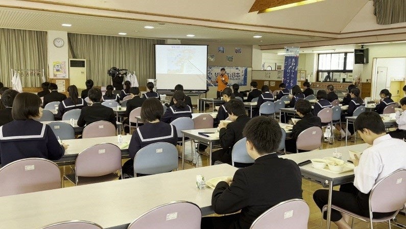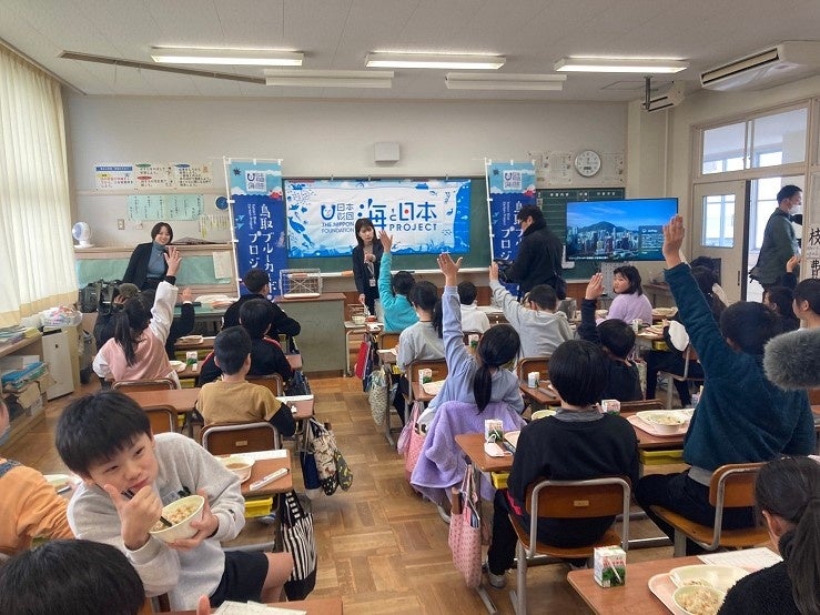 青谷小学校でも、たくさんの笑顔とともに、初めてウニを食べたが美味しかった。ウニが苦手だったが、ご飯に入っていると食べられるなどの感想が寄せられました。