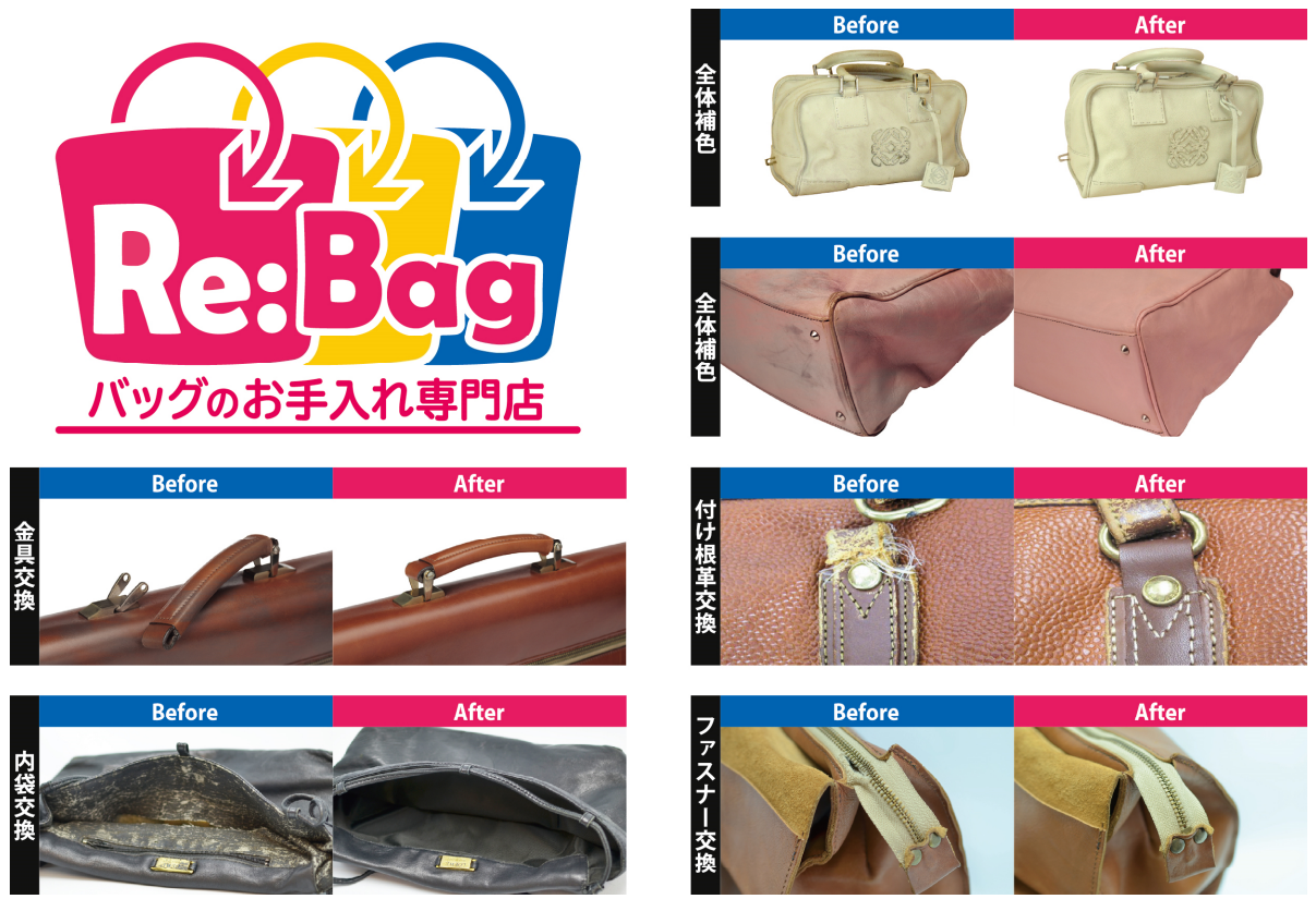 【Re:Bag(リバッグ)とは】 当社が展開するリアット!の中でも、特にバッグのお手入れ需要に対応する専門店を「Re:Bag(リバッグ)」と命名しております。