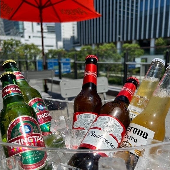 ■ビアテラスも好評開催中!24日(土)は世界各国のビールもフリードリンクとして登場。