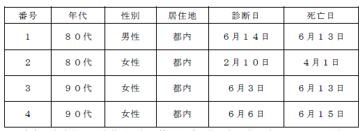 都内で新型コロナウイルスに感染した方が死亡されましたのでお知らせします。