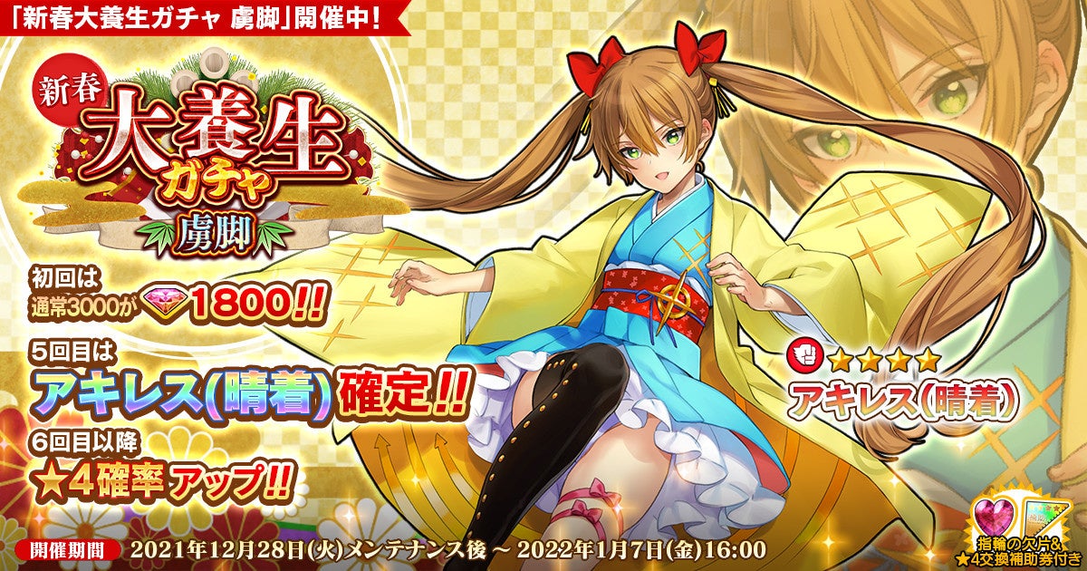 DMM GAMES『英雄*戦姫WW』にて『新春大養生ガチャ 虜脚』を追加!新規英雄『アキレス(晴着)』が登場!
