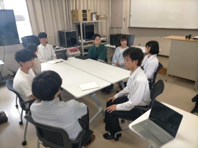 この取り組みは、探究的な学びの深化を目的とした支援活動の第一歩として行われたもので、特定非営利活動法人だっぴと連携し、「あなたの数年先の姿との対話」をコンセプトに、本学の学生団体iMS(代表:下川宏武・工学部4年)や、岡山大学データサイエンス部に所属する学部生と大学院生5人が、それぞれの専門性や経験を生かして高校生との対話に臨みました。