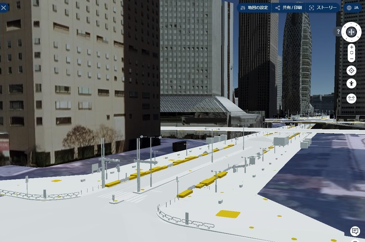 「都市の3Dデジタルマップ化プロジェクト」(都市整備局)で昨年度に作成した西新宿地区の地上及び地下の3Dデジタルマップデータ