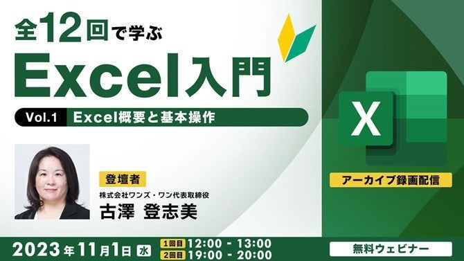 【Excel初心者向け】概要と基本操作を学ぶ!11/1(水)セミナー「全12回で学ぶExcel入門 Vol.1」のアーカイブ映像を配信!