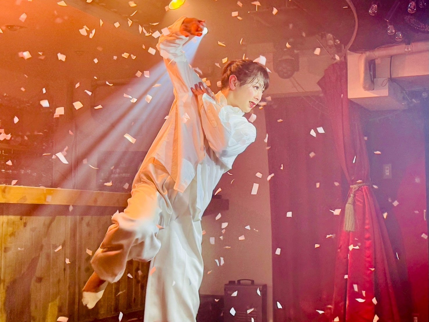 舞台上では、扇や傘、紙吹雪など、さまざまな小道具が巧みに使われ、次々と展開されるシーンは観る人を飽きさせません。