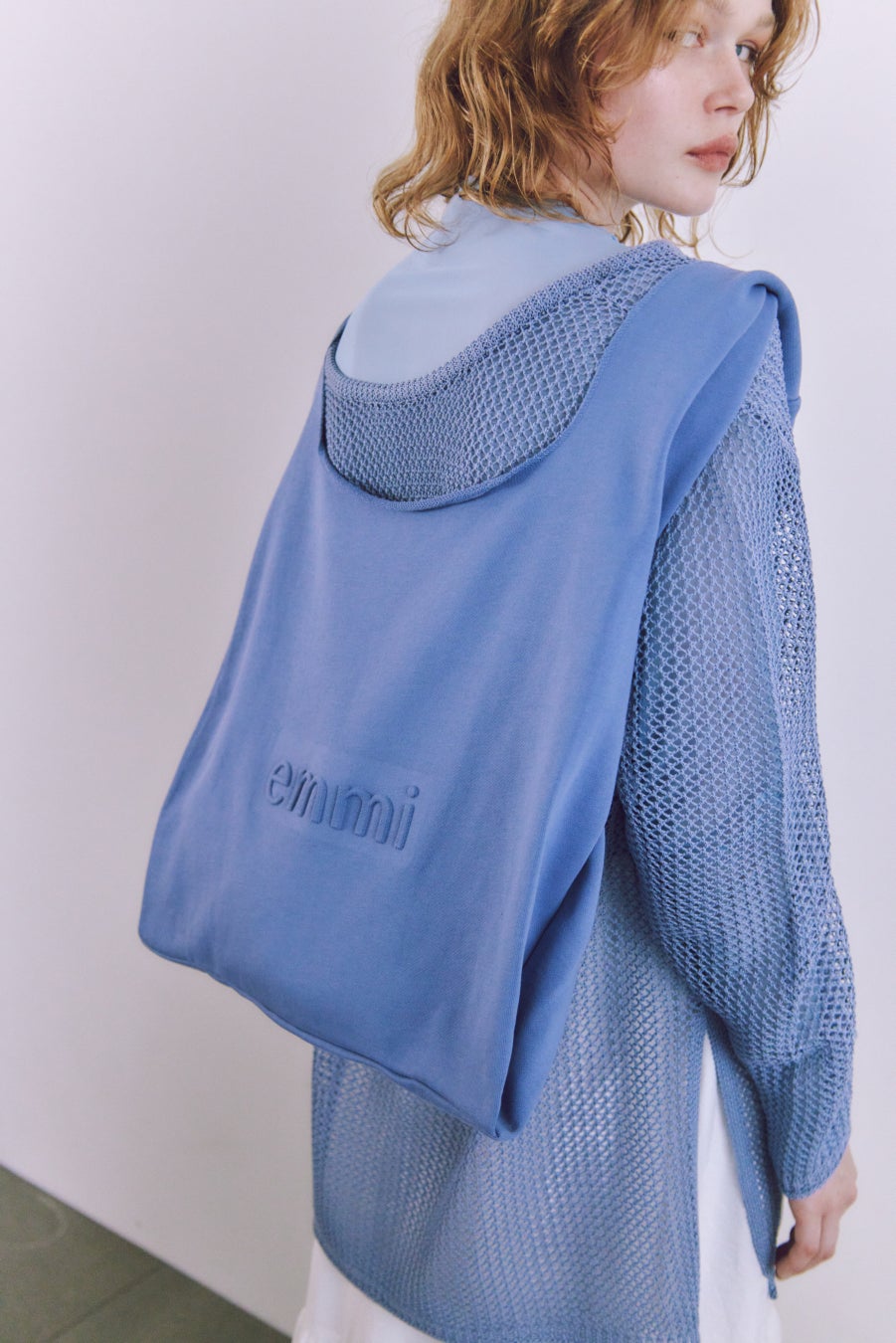 エンボス加工を施した立体感のあるemmiロゴがポイントのエコバッグ。