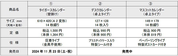 「阪神タイガース デスクカレンダー 2025(卓上タイプ)」、「阪神タイガース マスコットカレンダー 2025(卓上タイプ)」は引き続き発売中です。