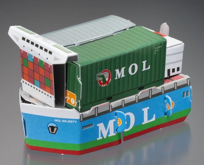 雑誌『幼稚園』は、これまでも「NTT東日本コラボ 公衆電話」や「東芝テックコラボ セルフレジ」など、「紙付録なのに、まるで本物だ!」とリアルにこだわった付録が話題になってきましたが、もちろん今回の商船三井とのコラボ付録もホンモノ志向。小さな5隻の船の成形はもちろんですが、印刷の色そのものにもこだわり、たとえば、船底の赤色は、商船三井の監修のもと実際に塗装されている銅色を含んだ赤色(フジツボなどの水生生物の付着を防ぐ防汚塗料)を再現するなど、細部にとことんこだわりました。