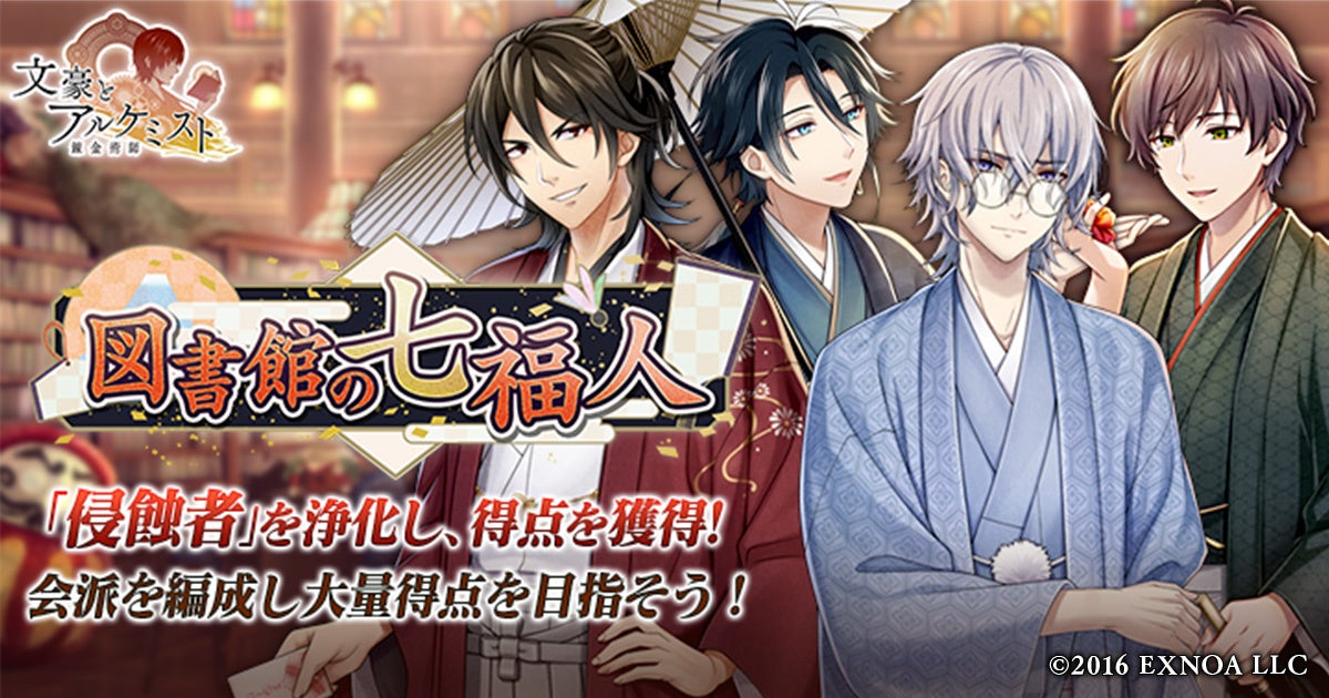 DMM GAMES『文豪とアルケミスト』イベント『調査任務「図書館の七福人」』と限定召装「図書館の七福人」を同時開催
