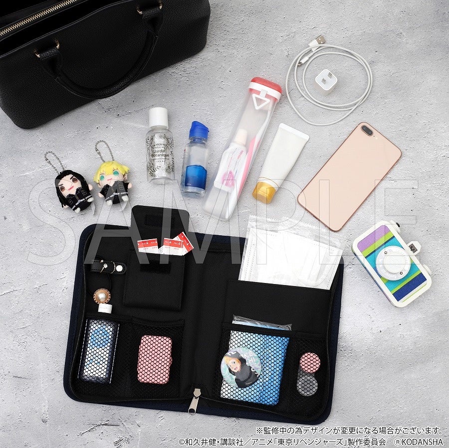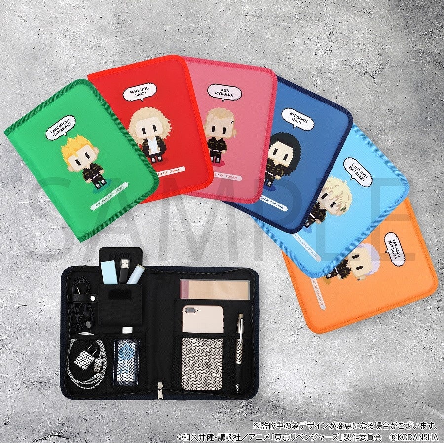 TVアニメ『東京リベンジャーズ』から、多機能ツールケースが登場!モバイルグッズやイヤホン、筆記用具などの小物の持ち運びに便利なポケットやスナップボタン付きバンドを搭載。自立するので、ちょっとしたパーテーションの代わりにもなります。表には、レトロかわいいドット絵のキャラクター・アイコンをデザイン。仕事や勉強時はもちろん、お出かけのお供にもおススメです!