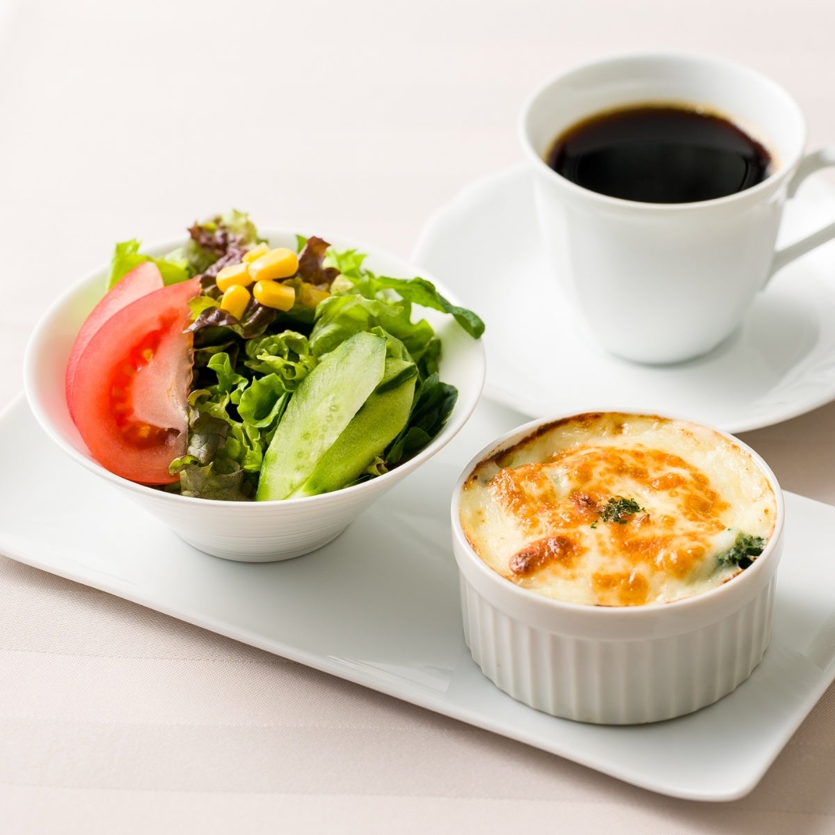 ミニドリアとサラダがついた朝から少しリッチな気分になれるモーニングをご用意しました