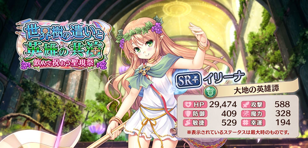 イベントストーリーを楽しみつつ『聖現祭の振舞酒』を集め、SR+イリーナ【大地の英雄譚】を手に入れましょう!