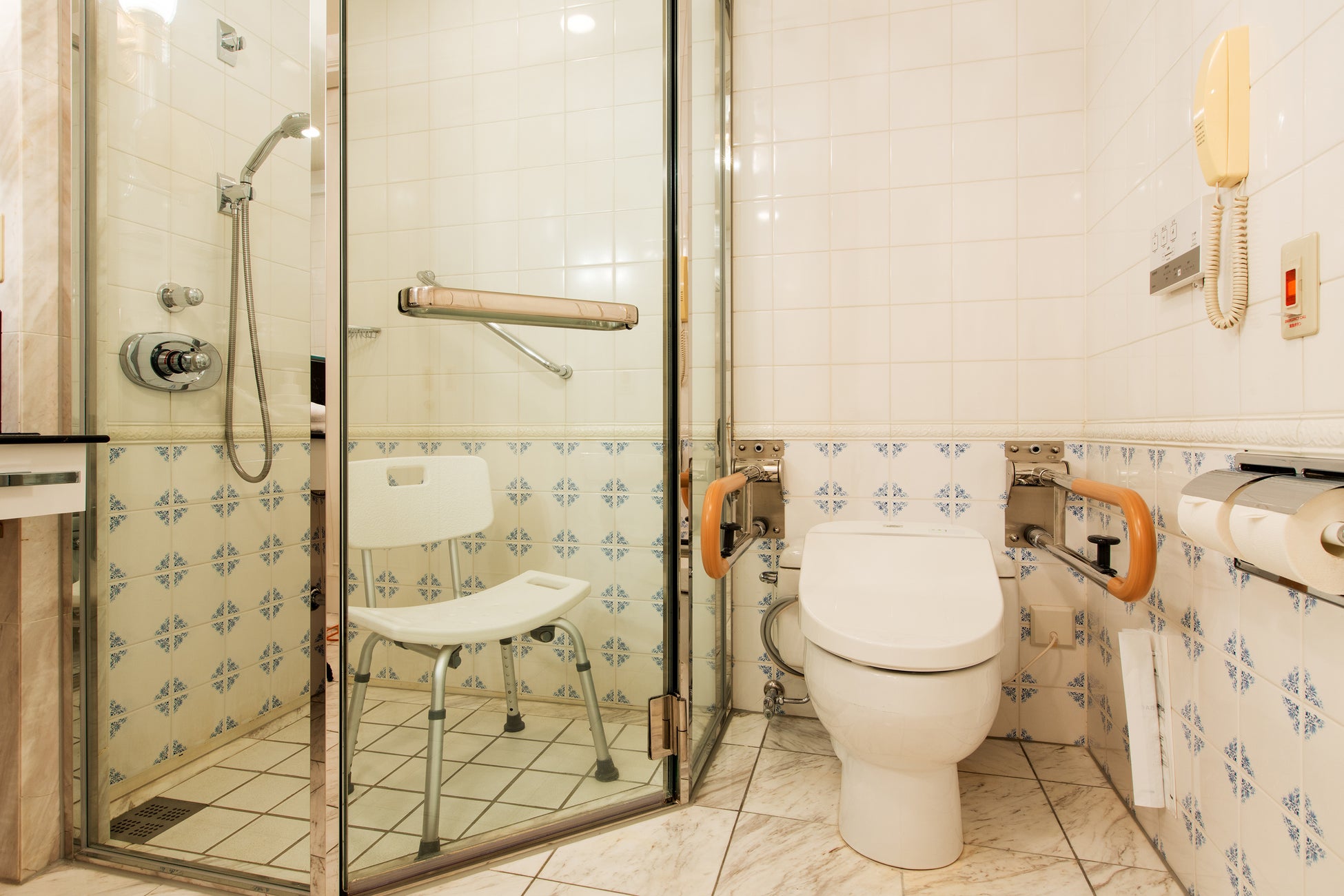 客室は、車椅子をご利用の方でもスムーズにご移動いただけるようエレベーターホールの近くに位置し、また出入り口のドアの幅を85cmに拡張、バスルームの出入り口は引き戸に変更しています。その他、頭と腰部分のリクライニング機能はもちろん、介護者の方の負担も軽減できるよう上下運動も可能なSIMMONS社製の電動ベッドや、足腰が弱い方をサポートできる電動補助ソファ、さらに聴覚障碍をお持ちの方でもドアホンの通知に気づけるようフラッシュ通知の設置をするなど、様々な工夫が凝らされています。