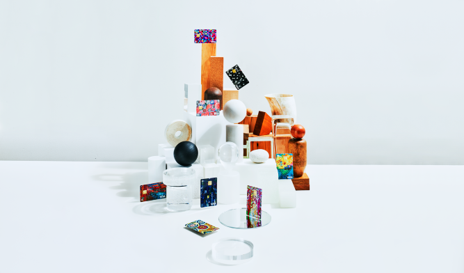 これまで丸井グループは、ヘラルボニーとの資本業務提携を通じて当社事業とのシナジー効果の創出をめざし、共創活動を進めてまいりました。利⽤⾦額の⼀部がヘラルボニーを通して福祉を支えるちからに換わるクレジットカード「ヘラルボニーカード」の発⾏や、マルイ・モディ店舗でポップアップイベントを開催するなど、さまざまな取り組みを実⾏しています。このたびの「ヘラルボニーカード」デザイン追加では、ヘラルボニーと契約している6名の新たなアーティストとコラボレーションし、全8種類での展開となります。