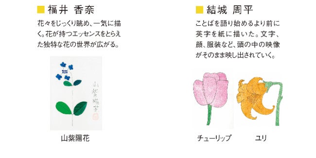 デザインは、〈ゆり/Koharu〉〈山紫陽花/FUKUI Kana〉〈レモン/NISHINOSONO Yuki〉〈チューリップ・ユリ/YUKI Shuhei〉〈スイセンとパンジーの色々/NISHINOSONO Yuki〉〈おり紙「花。咲いた。」/URUSHIMA Tomoko〉の6種類です。