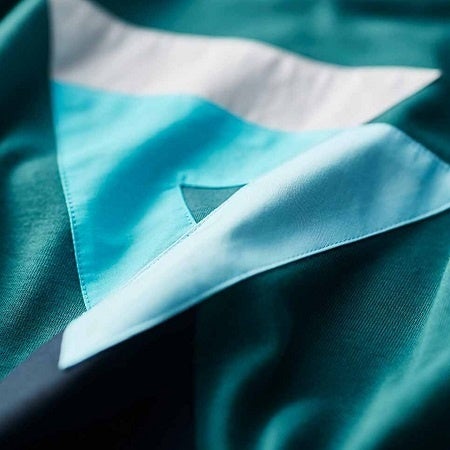 ユニセックスな印象ながら、やさしい空気感が漂う一枚です。ていねいに塗られた鉛筆のタッチや微妙な色の重なりが繊細な作品をそのまま表現した手仕事風のパッチワークがポイントです。