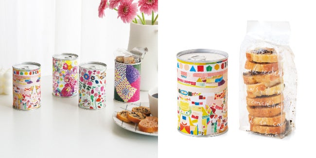 不思議でかわいいチャレンジドのアート缶に、北海道産バターなど厳選素材でおいしくていねいに作られた福祉事業所のラスクをセットしたお菓子缶です。アートのアレンジは、福祉とビジネスをデザインでつなぐ「ダブディビ・デザイン」が担当しました。おいしく食べた後の缶は、お部屋に飾ってインテリアとしても楽しめます。