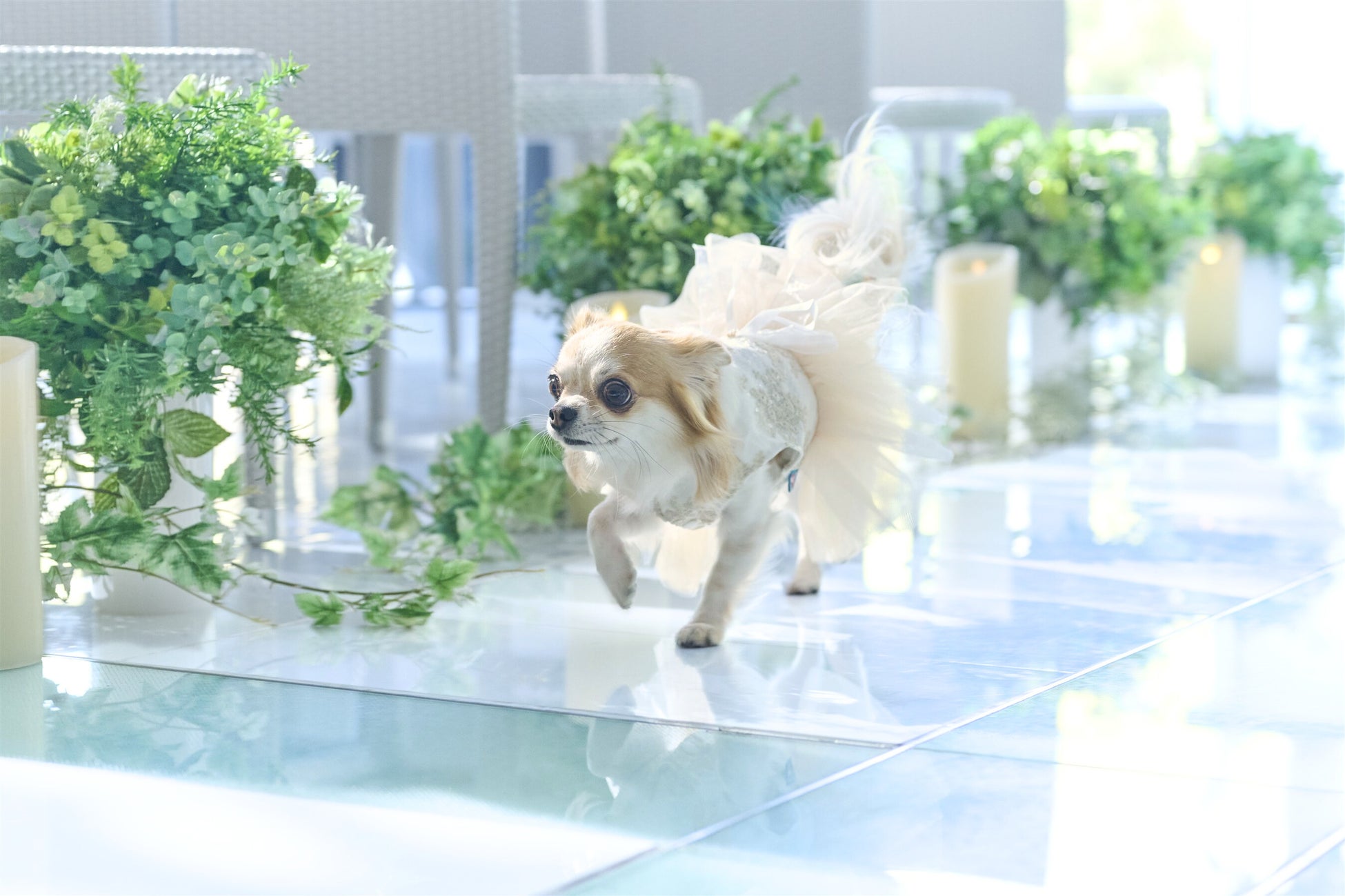ホテルニューオータニ幕張では、大切な家族の一員である愛犬との挙式が叶うプラン『わんlove Wedding』を販売しています。