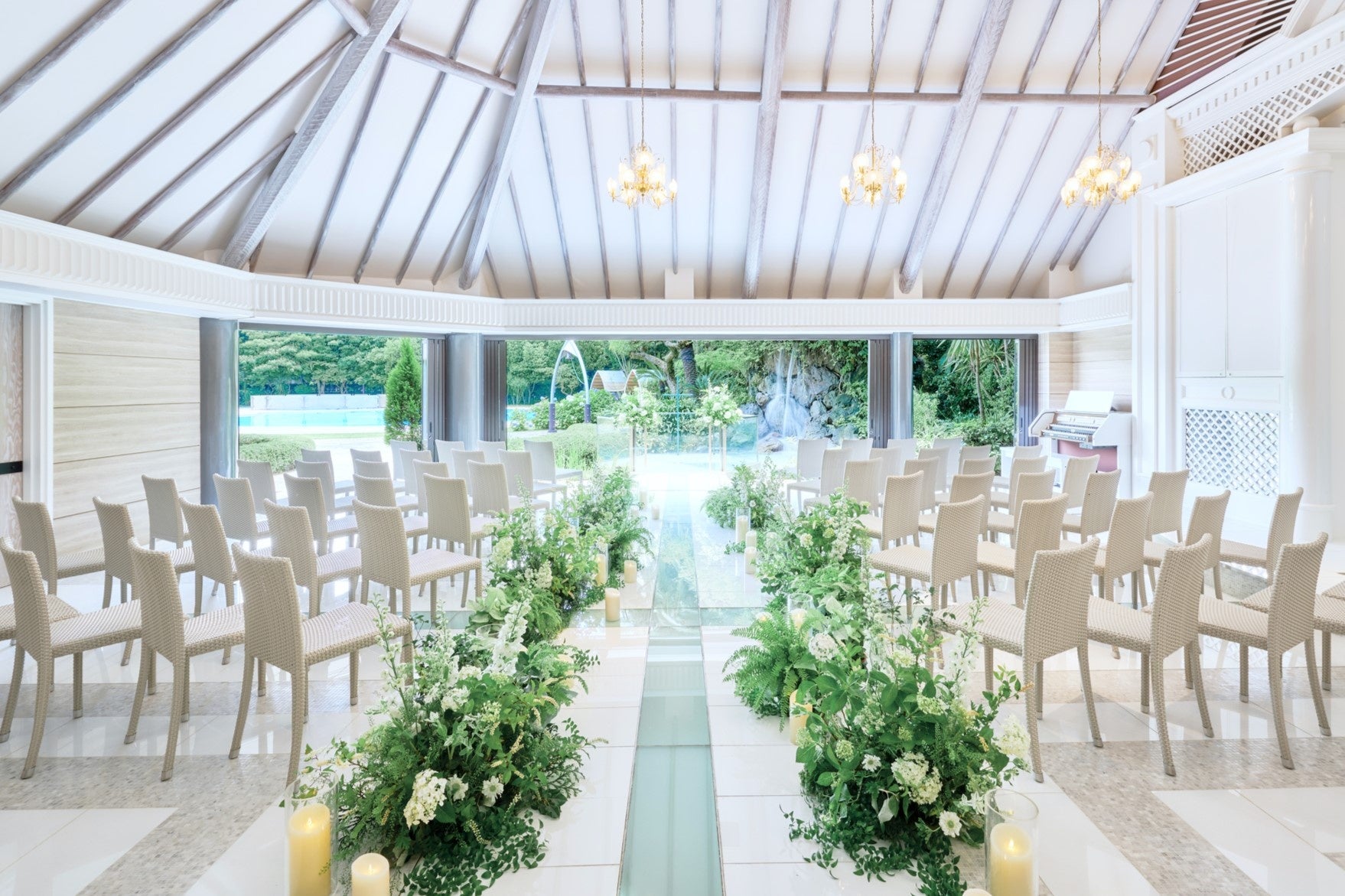ホテルウエディングの魅力は、料理やサービスなどのおもてなしを安心して任せられること。緑豊かなガーデンと滝の音に包まれたリゾート空間「Shell House(シェルハウス)」を丸ごと体感し、ウエディングメニューのテイスティングもできる特別なフェアを開催します。ぜひお見逃しなく!