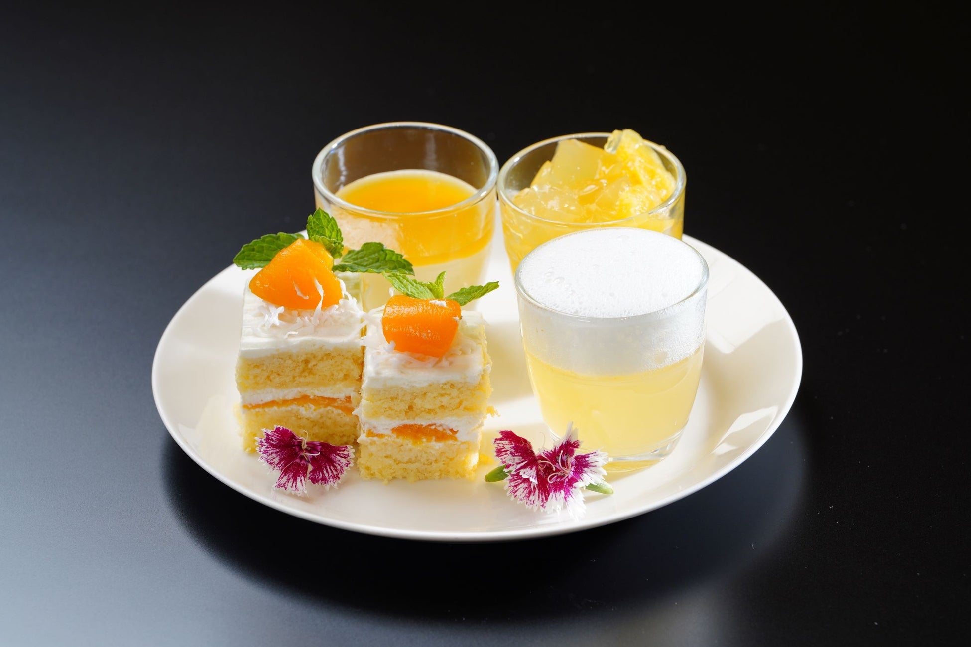 ・パッションフルーツとフロマージュのムース ・ココナッツとアプリコットのケーキ