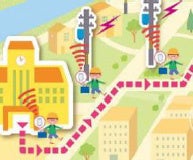 まちなかに設置されたカメラとビーコンのインフラ網を利用し、お子様や高齢者を見守ります。