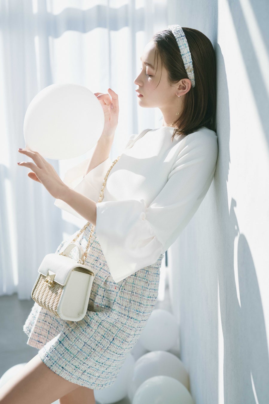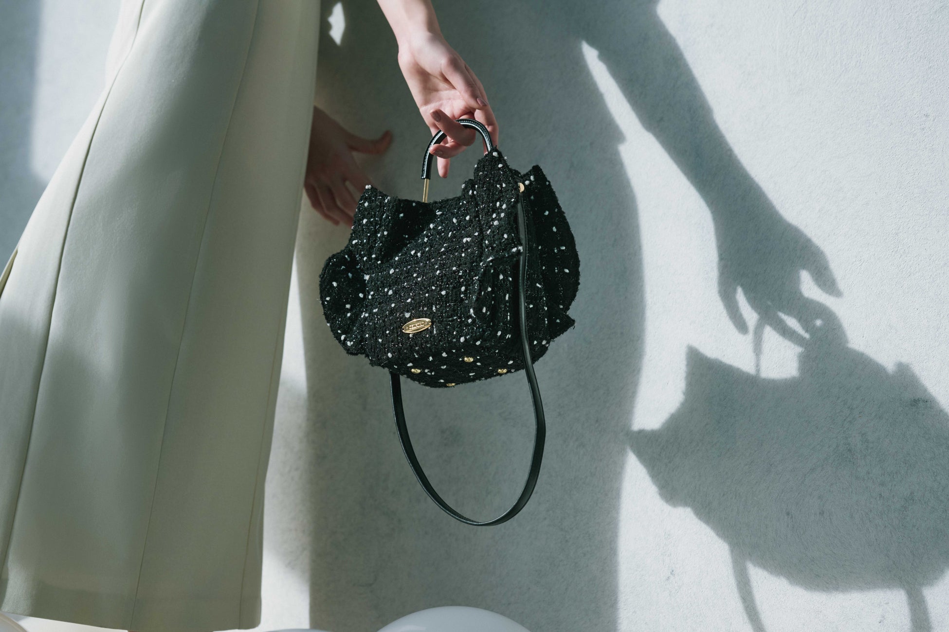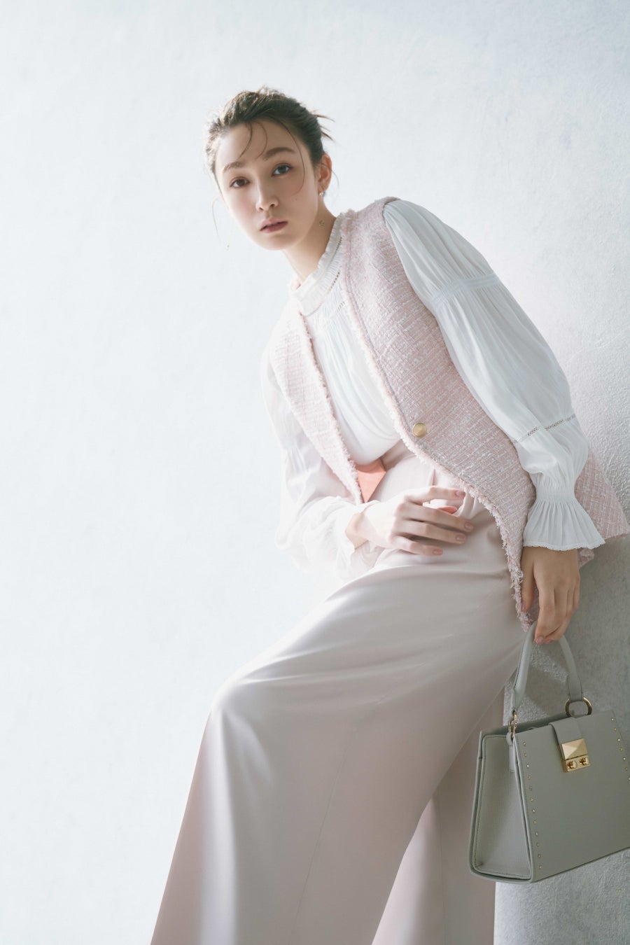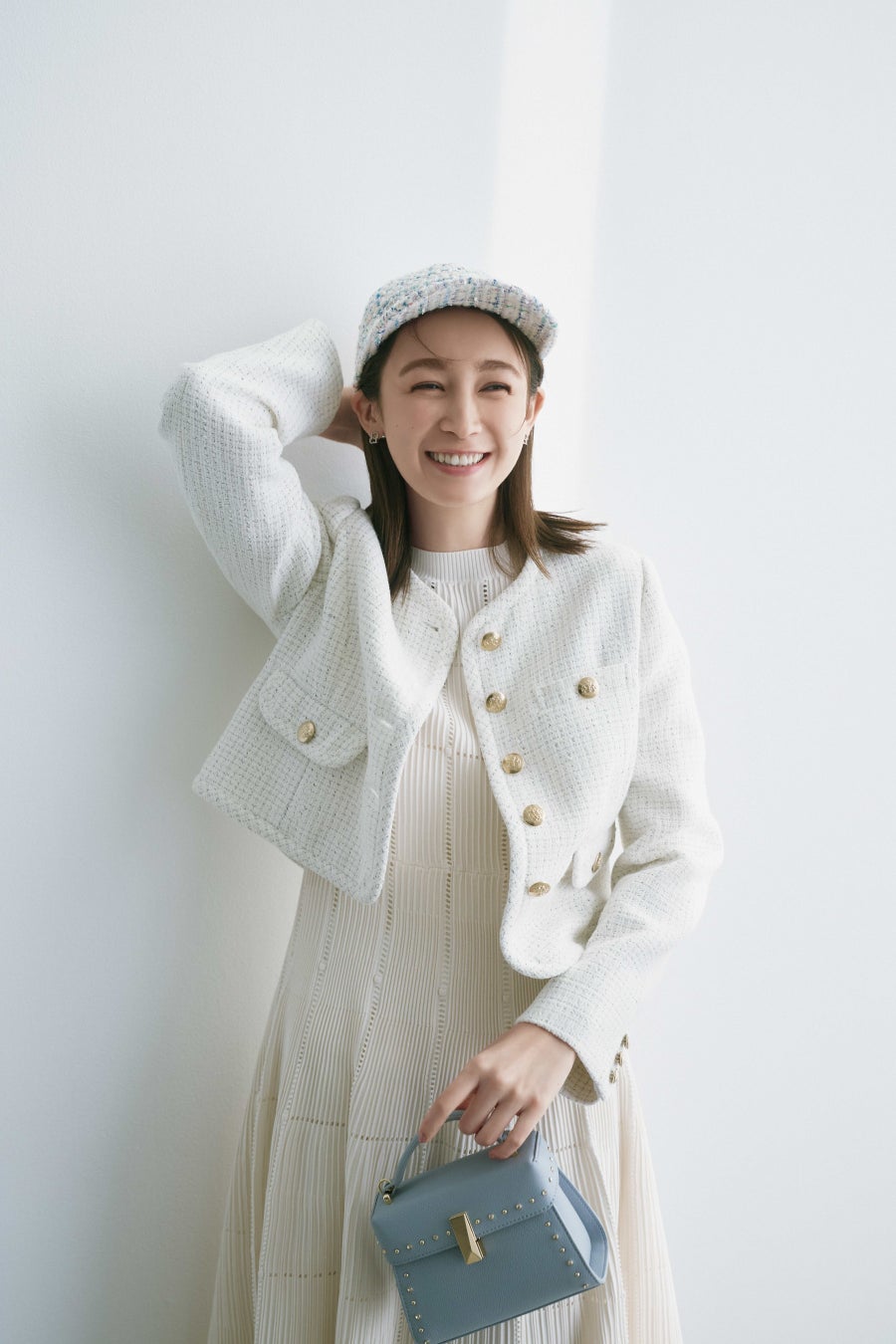 ツイード生地の持つクラス感を、柔らかな着心地や小物使いでもっと身近に。